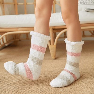 Plush socks have a unique structure with a scaly layer on the surface, which can firmly lock the body heat, so it is more comfortable and warm than ordinary fibers.