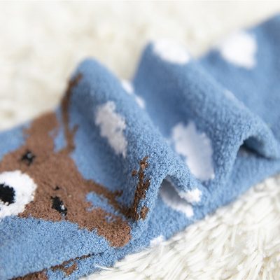 Plush socks have good hygroscopicity, and cotton fiber has good hygroscopicity. Under normal circumstances, the fiber can absorb moisture from the surrounding atmosphere, and its moisture content is 8-10%, so it touches human skin and makes People feel soft and not stiff.