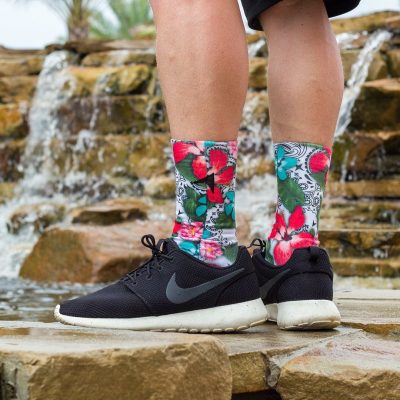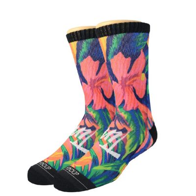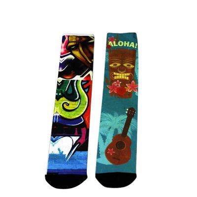 Sublimation socks are also called thermal transfer socks and 3D printed socks. As the name suggests, it is a kind of paper (or film) that has been printed with a pattern, and the image on the paper (or film) is transferred to various Then tear off the transfer paper (film) on the fabric, and the desired image is left on the cloth, so that the original plain socks can produce a lifelike picture, and it can also be dynamic!